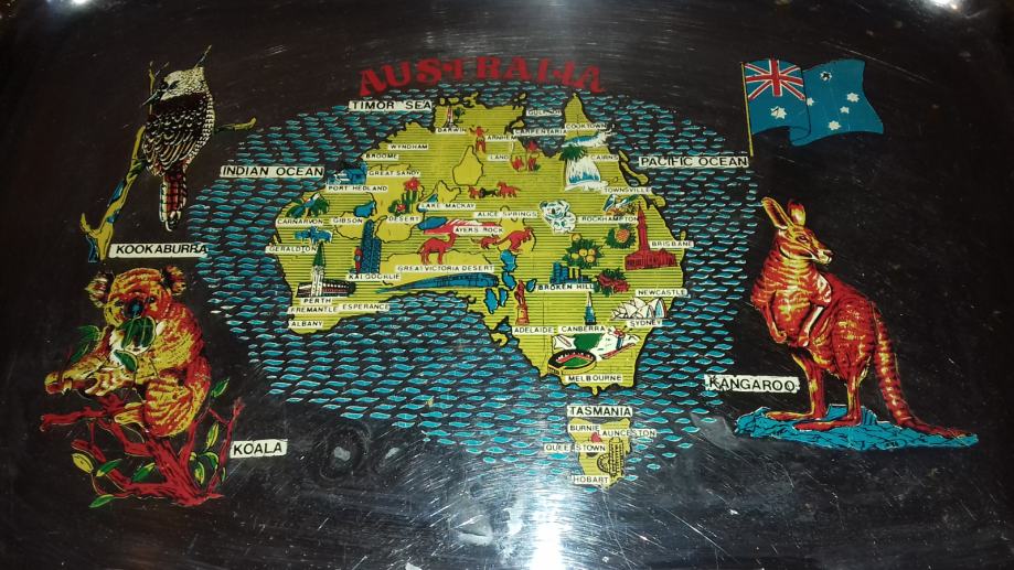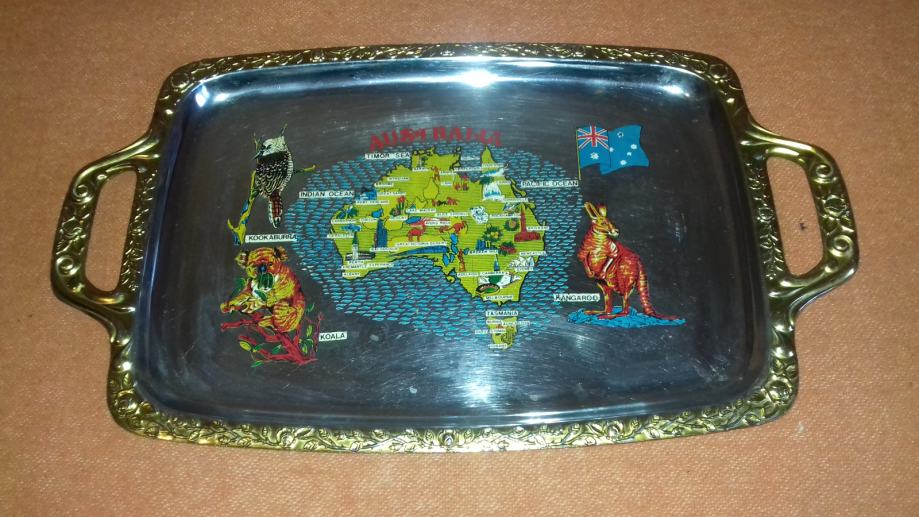 Veliki metalni pladanj sa ručkama sa motivom Australije, made in Japan