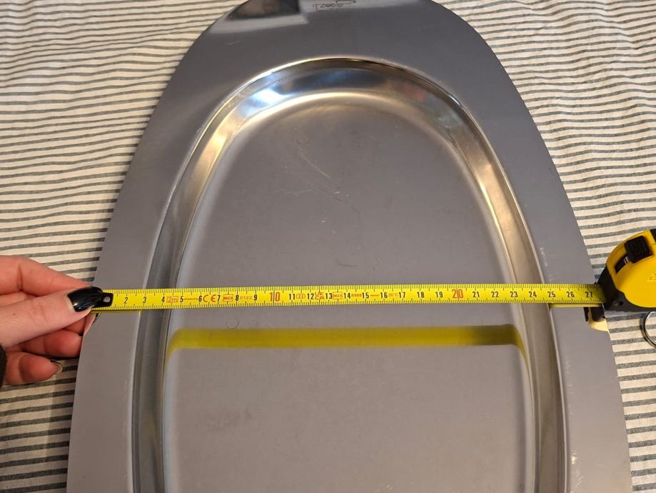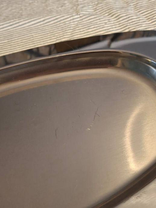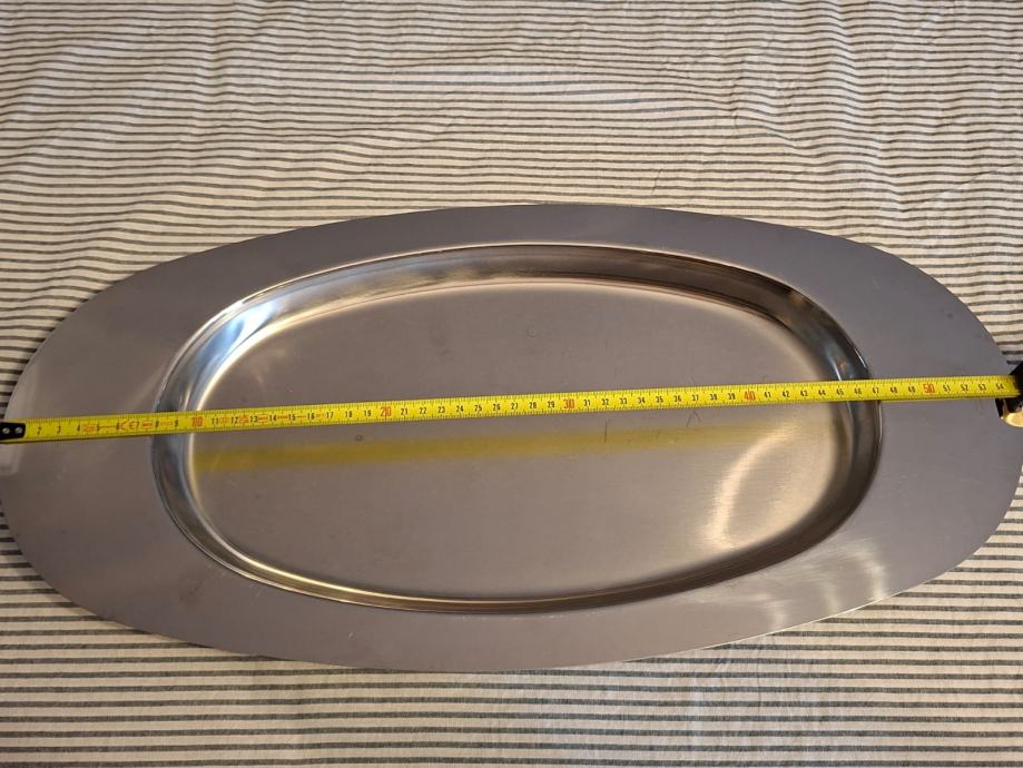 Prodajem Zepter pladanj za posluživanje ovalnog oblika, izrađen od nehrđajućeg čelika srebrne boje. Pladanj je solidne izrade kakva je karakteristična za Zepter proizvode, s blago uzdignutim središnjim dijelom i ravnim rubom koji daje elegantan izgled.