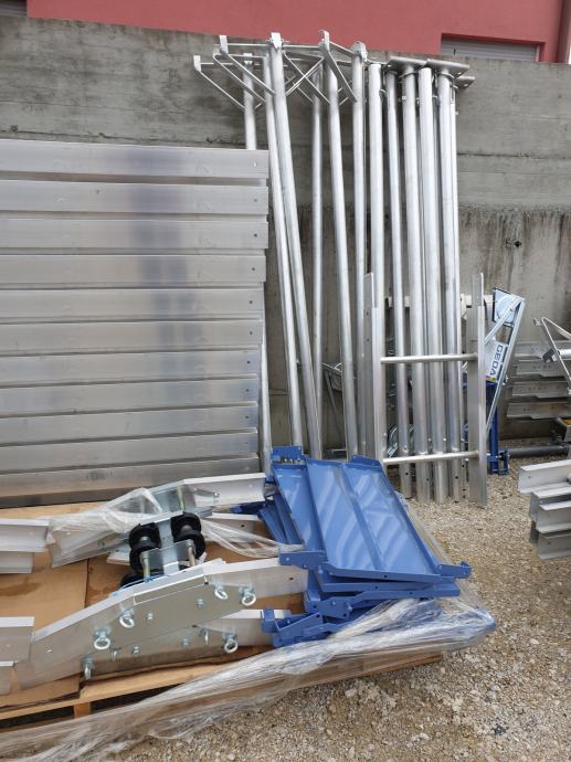 Geda kosi lift Comfort 250, do 30 m visine, (Cijena se odnosi na komplet od 13,6 metara) mogućnost kupnje dodatnih elemenata). Komplet od 13,6 metara sadrži sljedeće: 6 elemenata po 2 metra (uključujući početni) 1 element x 1 met. jedno koljeno - podesivi zglob 0,60 met. podupirač, standardna korpa sa bočnim stranicama, kolotura , motor 250 kg sa upravljačkom konzolom i krajnjim prekidačom. Dizalice su isporučive odmah po uplati sa skladišta u Dugom Selu.