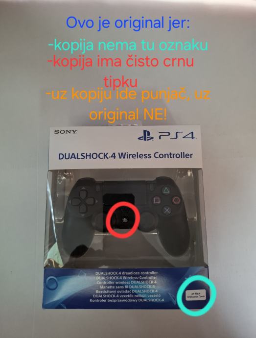Neke kopije imaju na srednjoj tipki oznaku PS ali ih zato možete prepoznati tako što na kutiji nema oznake za boju i često u kutiji bude i punjač/kabal.