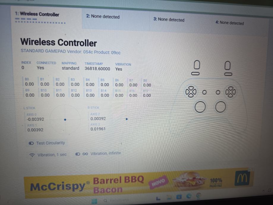 Prodaje se PS4 DualShock 4 V2 kontroler. Kontroler radi odlično i sve tipke su ispravne. Korišten je te je sve vidljivo na slikama. Plastika je na nekim mjestima malo izgrebana od korištenja. Kontroler je testiran te nema drifta na analog gljivama. Na profilu imam još PS3, PS4 i PS5 igrica pa slobodno pogledajte i ostale oglase. Ukoliko bude poslano putem BoxNow slanje može potrajati nekoliko dana duže.