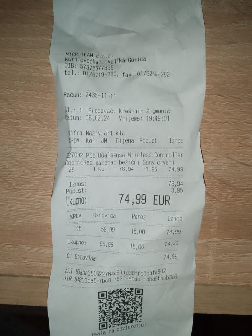 Original PS 5 Controller. Kupljen 8.2.2024 i korišten je jako malo, 3 tjedna. Račun, garancija, kutija. Stanje 10/10 Cijena je fiksna. Poštom ne šaljem. Najbolja opcija je susret uživo. Primopredaja Velika Gorica Centar ili SuperNova Buzin. 091 543 4267