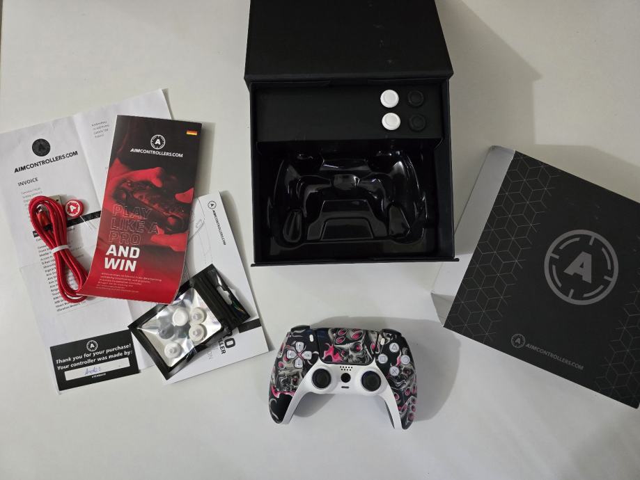 Prodajem ps5 pro kontroler od aimcontrollers-a . Kontroler je vrhunskom stanju nema oštećenja niti bilo kakve kvarove. Svega par sati odigrano na njemu više je stajao kao kolekcionarski primjer. Kontroler ima doživotno jamstvo odnosno garanciju. Uz kontroler idu i dodatni nastavci za gljivice koji se mogu mjenjati.
