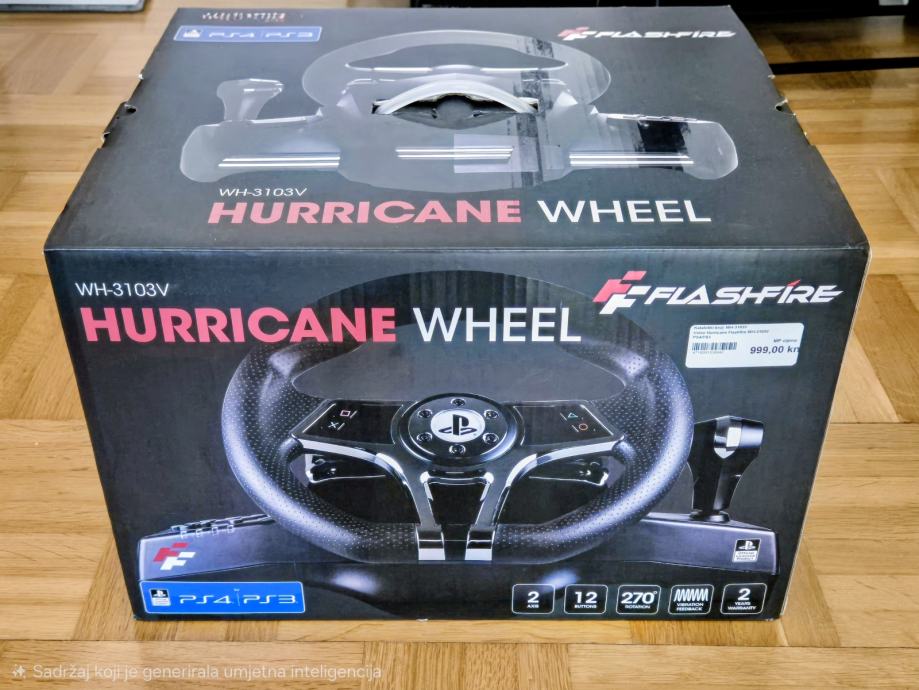 FlashFire Hurricane volan s pedalama za PS4 ili PS3 u odličnom stanju s pripadajućom kutijom i papirima.