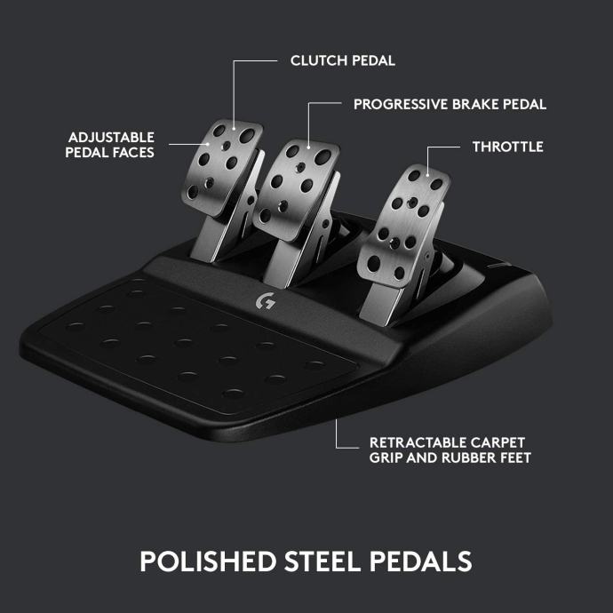 PREMIUM RACING DESIGN: Osvježeni dizajn prijenosnika Logitech G uključuje vrhunske materijale poput ručno prošivenog crnog kožnog kotača volana i poliranih metalnih pedala. Doživite užitak vožnje kod kuće