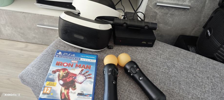 Prodajem rabljeni PlayStation VR komplet koji je kompatibilan s PS4 i PS5 konzolama. Set uključuje VR naočale, PlayStation Move kontrolere i adapter za povezivanje sa ps5 konzolom i kamerom. Dolazi s igrom Iron Man VR za potpuno iskustvo virtualne stvarnosti.