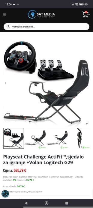 Playseat Challenge ActiFit™,sjedalo i volan Logitech G29