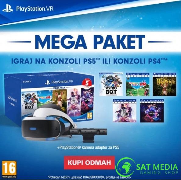 PlayStation VR headset v2 Mega Pack 3 + PS4 Kamera v2 (Mk5) +Move Motion controller – Twin pack PS4/PS,novo u trgovini,račun,gar