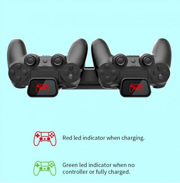Ovaj proizvod može istovremeno puniti dva originalna PS4 kontrolera. Tijekom punjenja žaruljica indikatora na prednjem zaslonu je crvena i postat će zelena kad se kontroleri potpuno napune