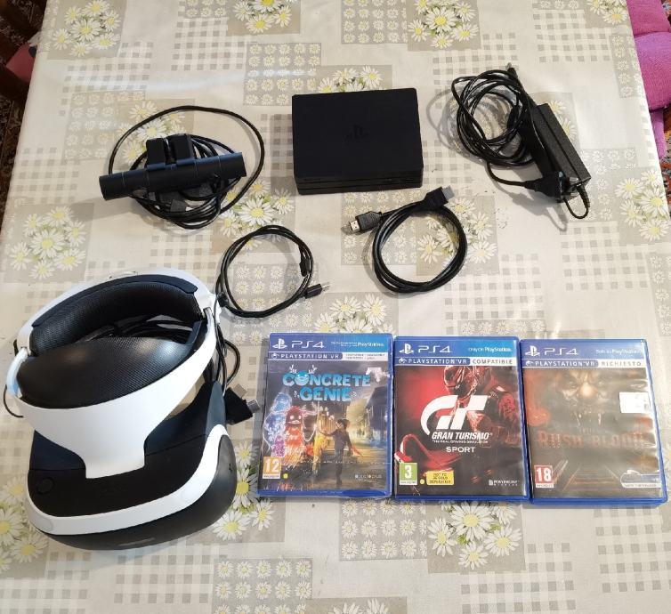 Prodajem PS4 VR set u kompletu s 3 igrice te adapterom za PS5.