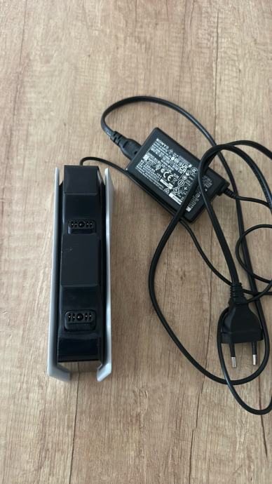 Sony PS5 DualSense stanicu za punjenje. Radi se o originalnoj Sonyjevoj stanici koja omogućuje istovremeno punjenje dva DualSense kontrolera. Dolazi s originalnim napajanjem. Bijelo-crne je boje, u skladu s dizajnom PS5 konzole.
