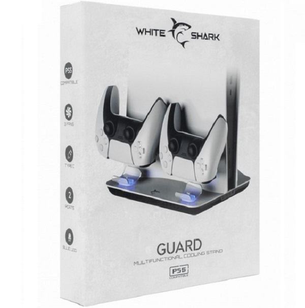 Stalak za PS5 s punjačem za kontrolere i hlađenjem White Shark Guard