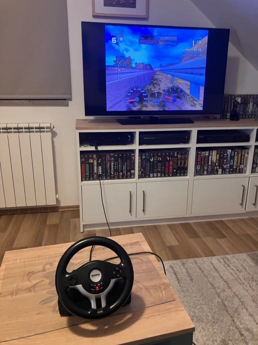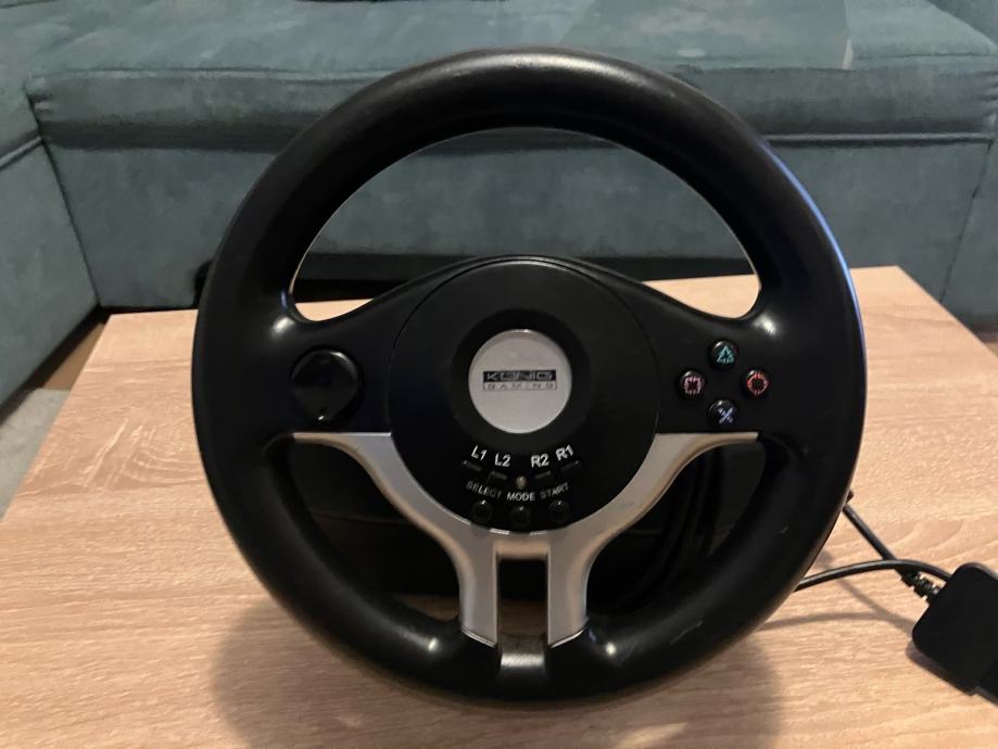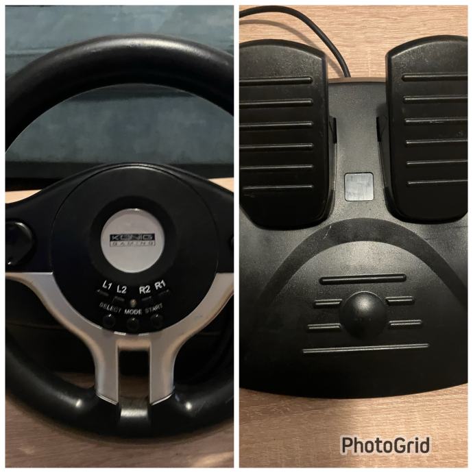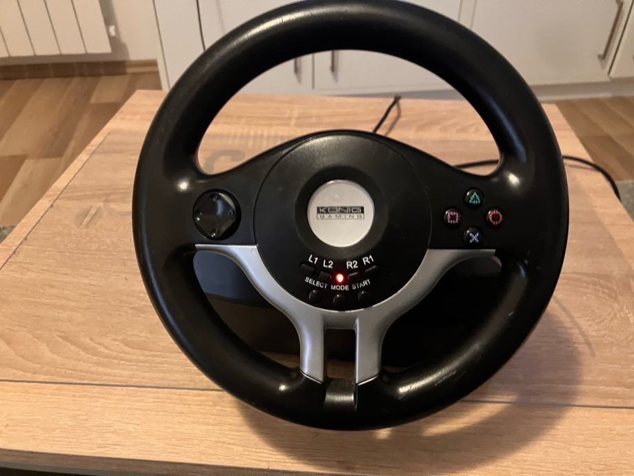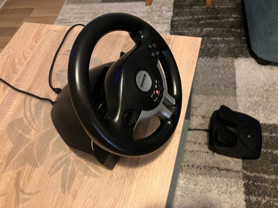 Konig gaming volan s papučicama gasa i kočnice za PS2 / PC. Potpuno ispravan-30 fotografija je u oglasu. Na volanu se nalaze ručice mjenjača (flappy-paddle gearbox) te gumene nožice za pričvršćivanje na stol. Realan doživljaj vožnje ostvaren povratnim vibracijama te analognim papučicama gasa i kočnice. Cijena je 30 EUR za osobno preuzimanje u Popovači. Troškovi slanja su dodatna 5 EUR Poštom za unaprijed uplatu na račun ili 7 EUR za plaćanje pouzećem. Box Now slanje je 8 EUR. Pakiram tako da je sigurno u transportu.Odgovaram na pozive, poruke putem Njuškala, SMS, Viber