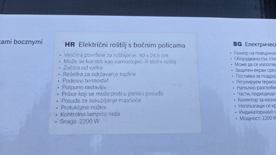 Električni roštilj sa bočnim policama.