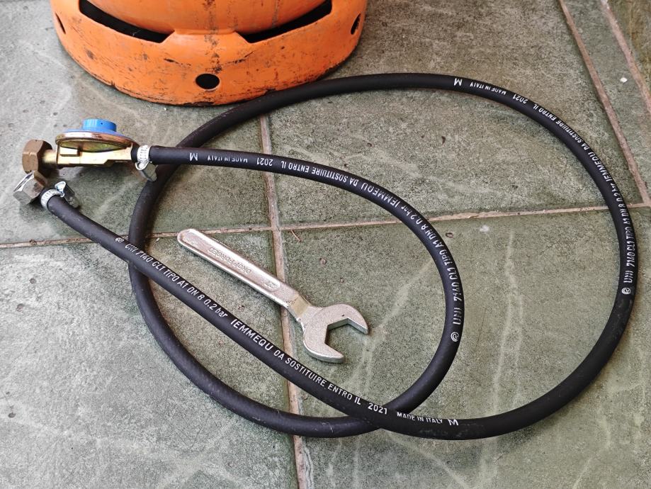 Uz bocu ide regulator tlaka plina, 190 cm crijeva i ključ za spajanje na trošilo.