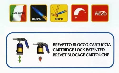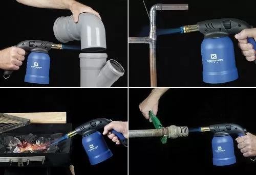 Plamenik (brener) na kartušu KEMPER KE2019 S PIEZO upaljačem. Plinski plamenik 190g.