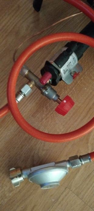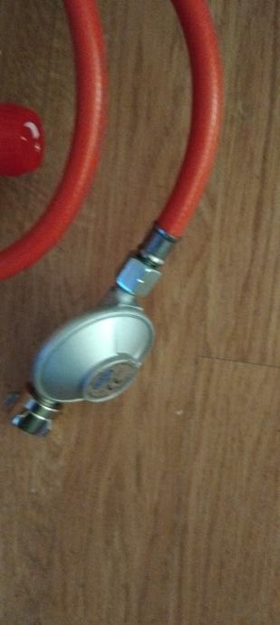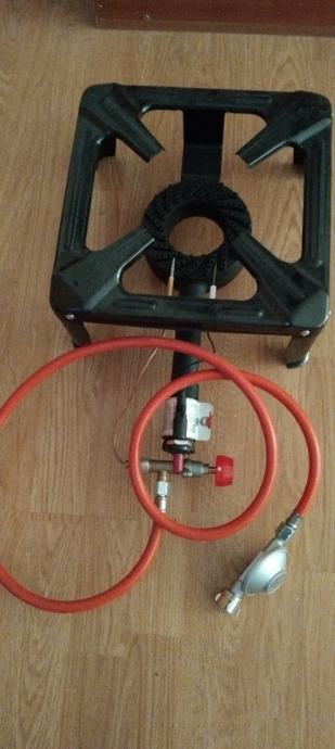 Plamenik ima ugrađen upaljac baca iskru netreba upaljac ili šibicama kad se pali crijevo i regulator sve u kompletu dobijete novo ne koristeno