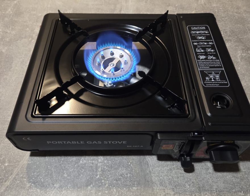 Prodajem prijenosni plinski štednjak, idealan za kampiranje, izlete ili kao dodatni štednjak u kući. Kompaktan, lagan i jednostavan za korištenje (piezo paljenje). Radi na standardne plinske kartuše.