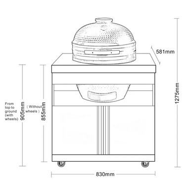 Kamado se nalazi na namjenski dizajniranim kolicima, koja su zatim integrirana u vanjsku kuhinju