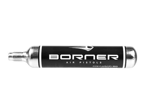 Borner CO2 ampule odlikuje konstantan visoki tlak i ujednačena kvaliteta. Stalni pritisak osigurava da svaki udarac bude isti kao prethodni. Na navoju nema rubova koji bi mogli oštetiti brtve u pištolju. Ampulom se može proizvesti 150-200 snažnih hitaca.