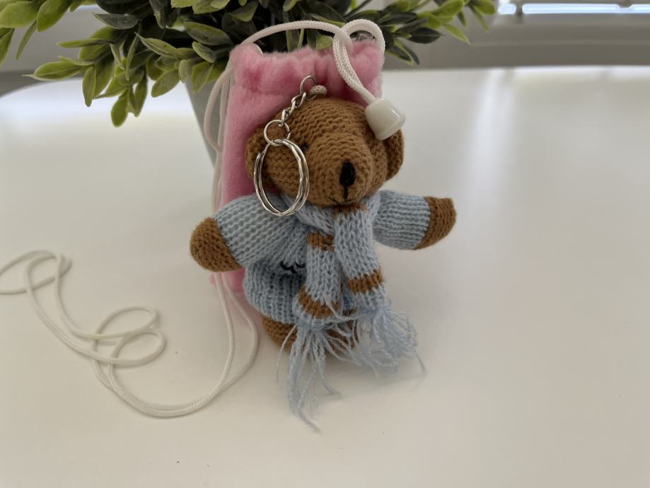 Može se nositi kao privjesak ili oko vrata, odotraga ima malu torbicu za novce ili sl. Skroz praktično. Jednom korišteno.