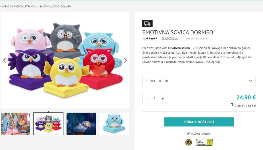 Dormeo emotivna, roza, plišana sovica, u odličnom stanju.