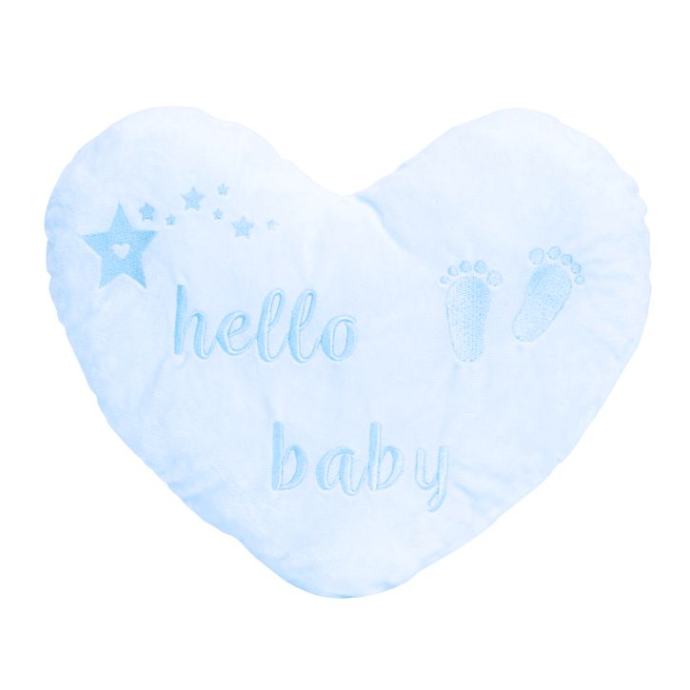 Ovaj preslatki jastuk u obliku srca s natpisom "Hello Baby" u nježnoj svijetloplavoj boji je idealan poklon za bebu. Visine 30 cm, ovaj mekani jastuk pruža udobnost i toplinu, čineći ga savršenom uspomenom za vašeg malog anđela.