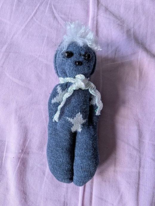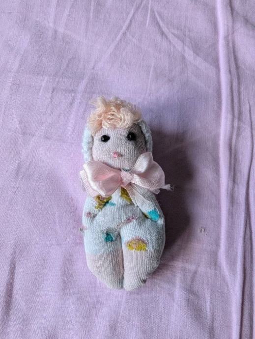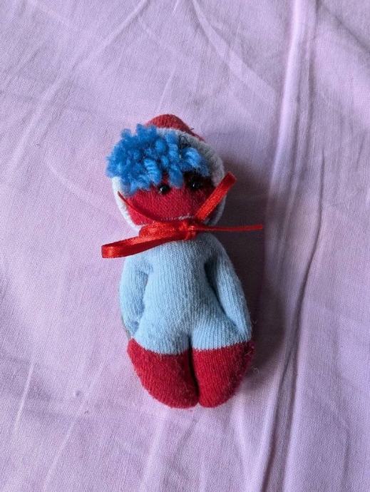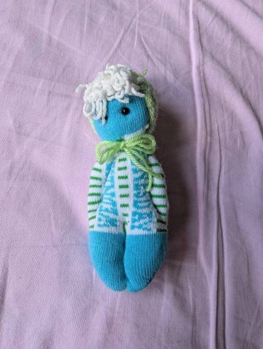 Krpena lutkica, ručni rad. Izrađuje ih baka koja je u mirovini da si upotpuni budžet.