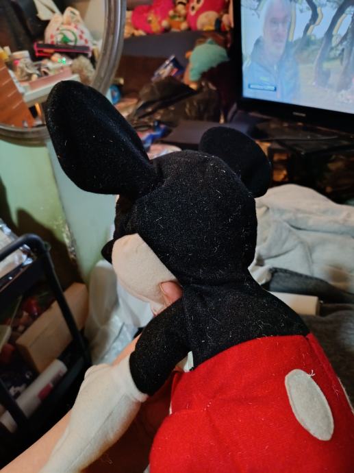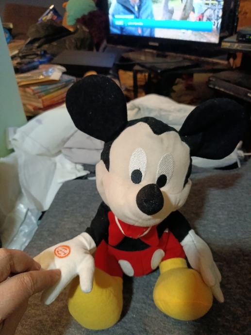 Mickey,pjeva i plese pritiskom na gumb,radi na baterije(ne dolaze s njim).Ispravan i prestosan,link videa saljem na zahtjev koga zanima u privatne poruke, da Vam docaram kolko je zabavan,pjeva pjesmu celebration stari hit,cupka nozicom i plese.Imam 2 komada istih,cijena je za jednog 20e.Osim par mucica kao nov je.Primopredaja Bistra,Zapresic,zapad Zagreba,ili slanje box now nakon vidljive uplate,hvala
