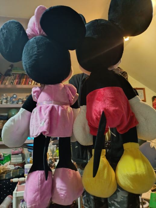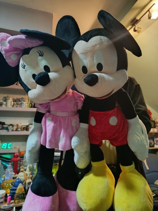 Mickey i Minnie velki,kvalitetni plisanci,80 cm svaki,oba u lotu 60eura samo da ne stoje❗Idealan poklon jer su oboje.Inace jedan takav velki je 50e.Original disney,imaju etiketu,i svaki je 80cm visine.Oboje svjeze oprani,dezinficirani i spremni za poklon da razvesele neke klince,kao novi i bez greske.Mogu poslati video na zahtjev u poruci,koga zanima da se bolje vide oboje uz slike.Cijenu ne bi previse snizavala,jer u ducanu je jedan 50e takav.Primopredaja Zapresic,Bistra,Zapad Zagreba ili saljem box now velki paket oboje za 8e nakon vidljive uplate,hvala