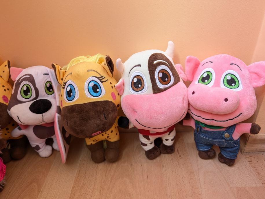 N-tele plišanci, NTL plišane igračke životinje, konj Rebica (2 komada), svinja Roko, pas Švrćo, ovca Janja, kravica tj tele N-tele i kujica Fifi.