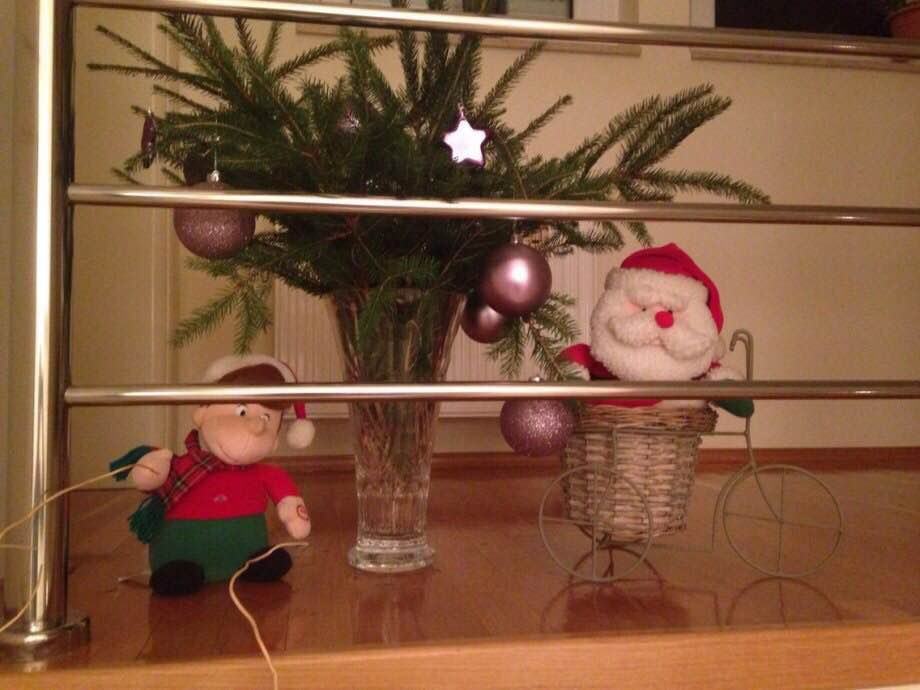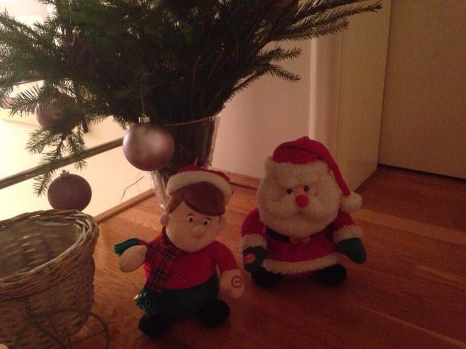 *novogodišnje igračke Djed mraz i djecak pjevaju novogodisnje pjesmice zajedno i naizmjenicno pritiskom na rucicu