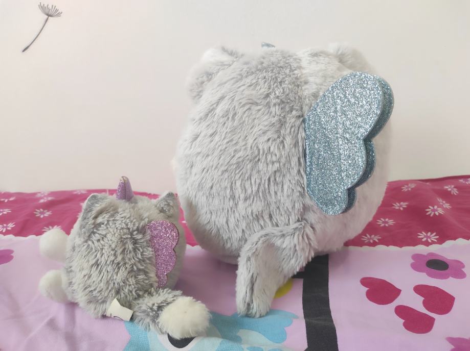 Plišane igračke jednorozi s krilima. Rogovi su na vrhu malo oguljeni