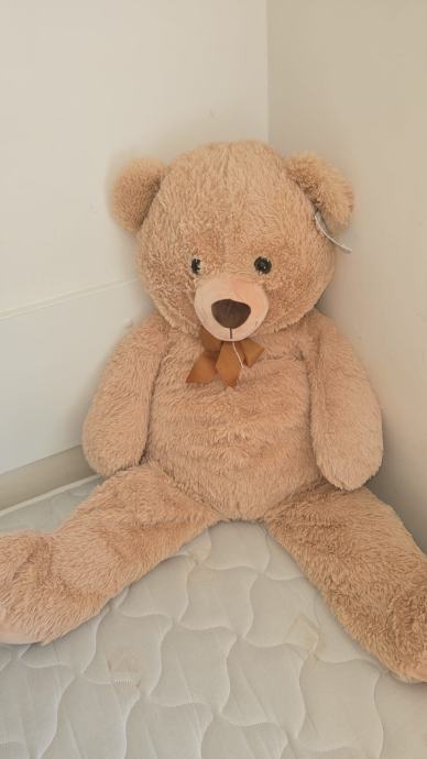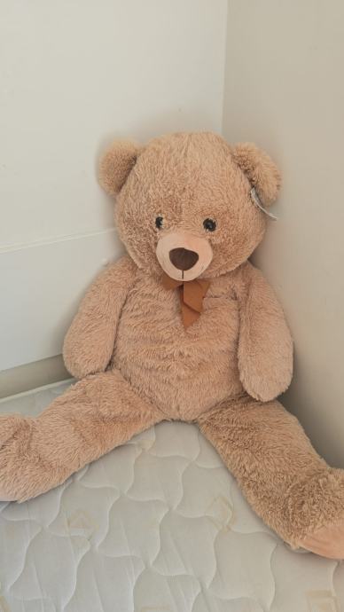 Upoznajte svog novog najboljeg prijatelja! Ovaj preslatki medo visok 100 cm savršen je za grljenje, igru i ukras u svakoj sobi. Mekan, topao i uvijek nasmijan, dolazi s elegantnom mašnicom i spreman je pružiti puno ljubavi!