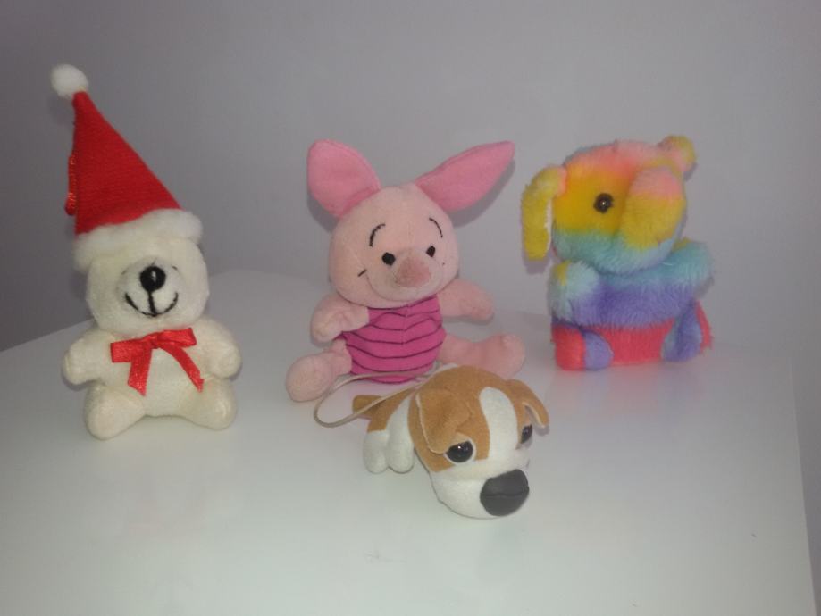 medvjedić s božićnom kapom i ostali na slici (svinja-zvečka, šareni slon i pas) 10 kn komad