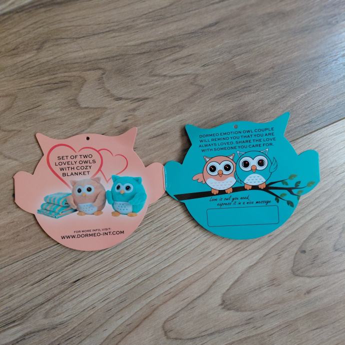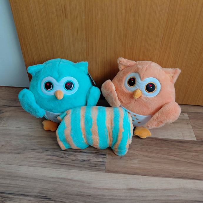 Prodajem nove plišane sovice Dormeo Emotion Owl Couple. Set se sastoji od dvije sovice u tirkiznoj i narančastoj boji i dekice s tirkizno-narančastim prugama. Sve je novo, s originalnom etiketom. Zaitetesirani molim da se jave putem SMS-a. Hvala