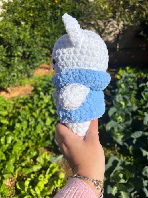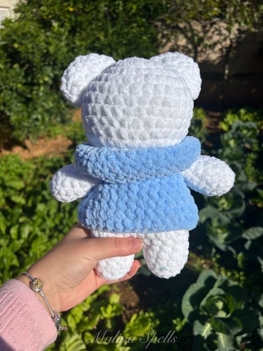 Upoznajte svog novog plišanog prijatelja. Ova ručno izrađena plišana igračka izrađena je od ultra mekane, plišane tkanine u mirnim bojama. Odjevena je u pahuljastu i ugodnu odjeću, s malim slatkim detaljima. Svaki bod je napravljen s ljubavlju, što ovoj čarobnoj igrački daje slatki i utješni šarm.