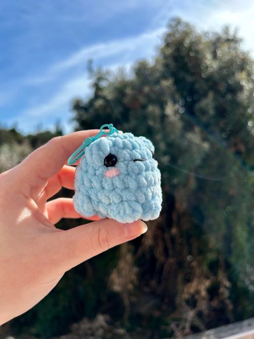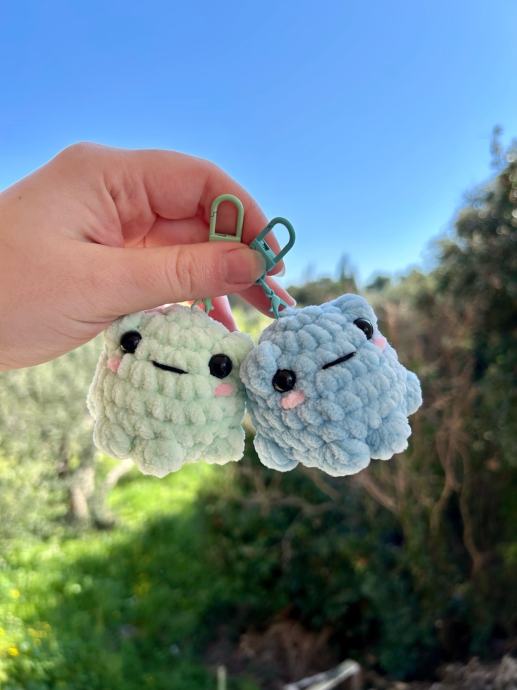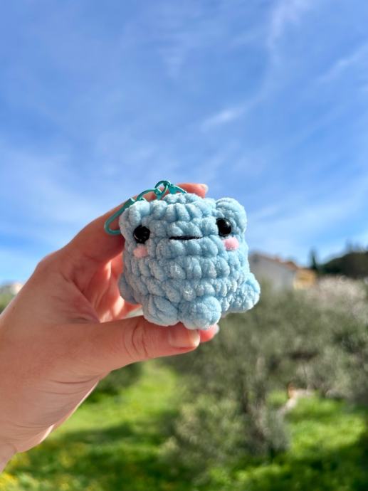Ručno heklani plišani privjesci zelena menta i svijetlo plava žabica