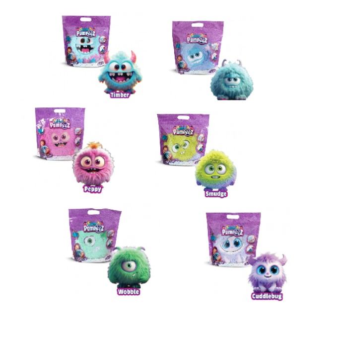 Pumpeez igračke su zabavni plišanci koje možeš napuhati i pretvoriti u čupavu loptu za igru. Na prvi pogled djeluju kao simpatična, mekana čudovišta, no kad ih napumpaš, zabava doslovno poleti u zrak.