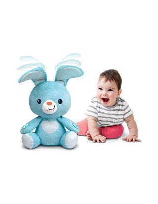 Interaktivna simpatična igračka Peek A boo zečić. Mekan je i ugodan na dodir. Priča i pjeva na hrvatskom (i slovenskom) jeziku. (Za uključivanje hrvatskog jezika potrebno je prebaciti na gumb mjeseca.)