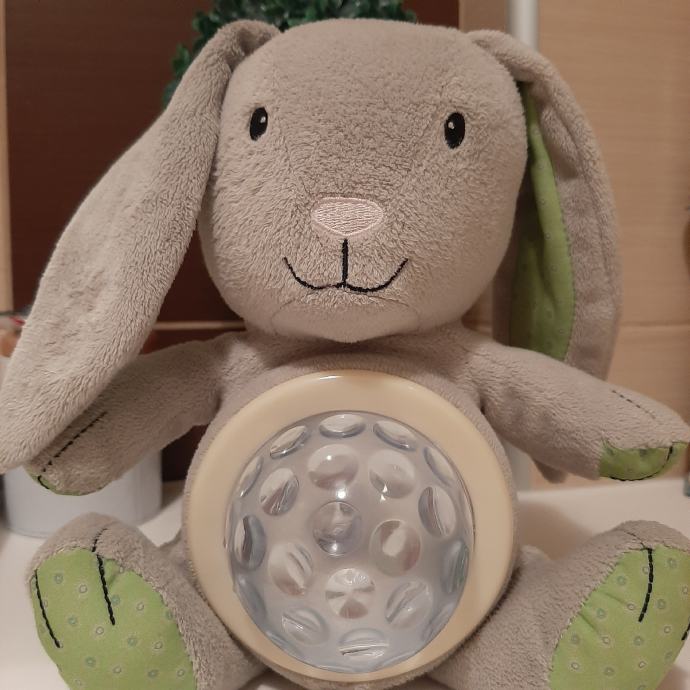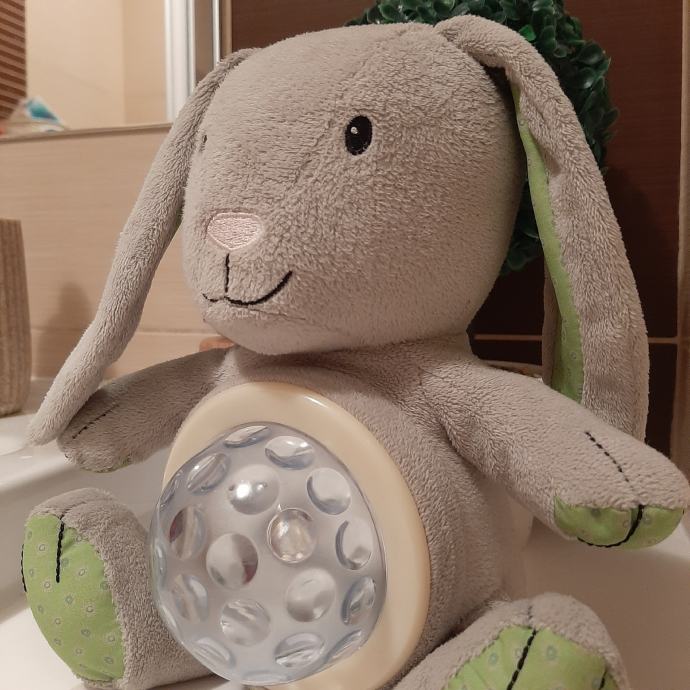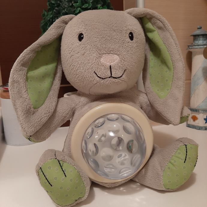 Jako pažen i čuvan zec kojem trbušćić svijetli u dvije boje a treća funkcija je pjesmica Twinkl twinkl little star.