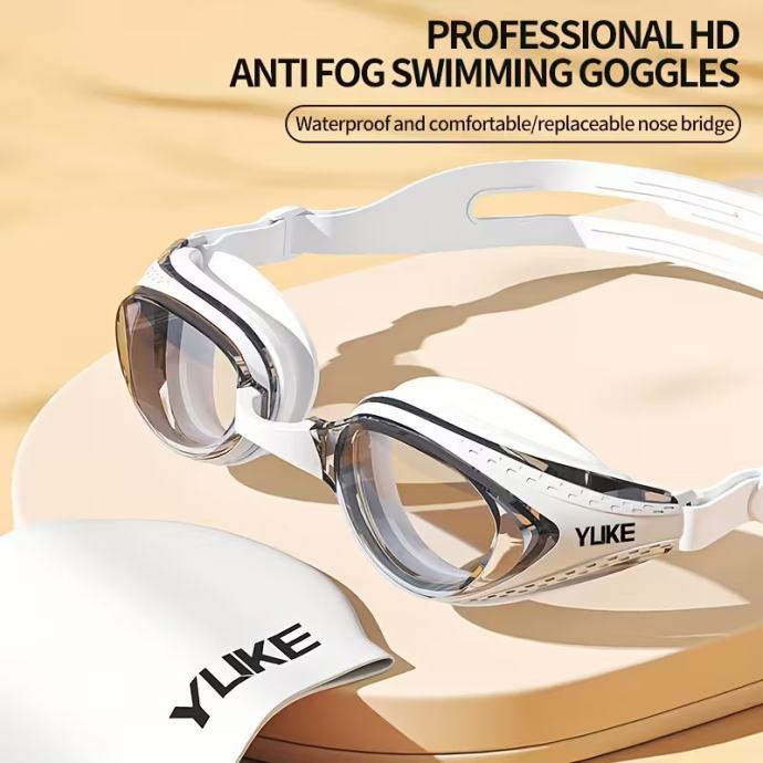 1 par profesionalnih HD vodootpornih naočala za plivanje protiv zamagljivanja za muškarce i žene - udobne, zamjenjivi nosni most, bijeli okvir s jasnim vidom - idealne za plivanje