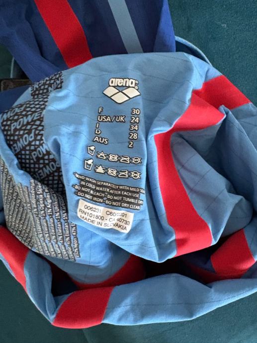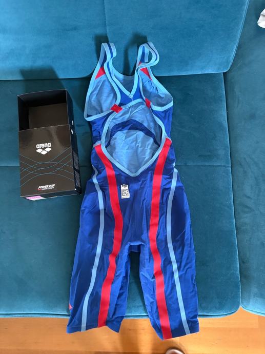 Prodajem Arena Carbon Core natjecateljski kupaći kostim u plavoj boji s crvenim i svjetloplavim detaljima. Kostim je izrađen od visokokvalitetnih materijala i namijenjen profesionalnom plivanju. Dolazi u veličini 36 (EU) odnosno 32 (US/UK). Uključena je i originalna kutija.