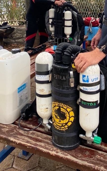 S Megom dolaze 4 boce (2x kisik, 2x diluent). Full automatik, Apeks 2.7 elektronika.
