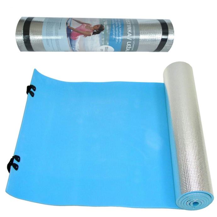 Spužvasta ležaljka 50x180 cm, debljine 5 mm, s jedne strane obložena alufolijom. Prikladna za plažu, kampiranje, izlete, tjelovježbu, za vanjsku i unutarnju upotrebu.