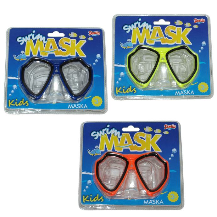 Dječja polumaska s zatvorenim nosnikom i velikim panoramskim staklima. Izrađena od izdržljivog PVC-a. Podesiva traka za savršeno pristajanje uz lice.