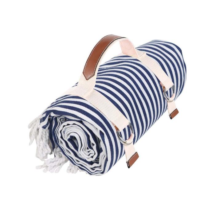 Tražite prostirku za plažu ili piknik koji će vaš boravak na otvorenom učiniti još ugodnijim? Ne tražite dalje! Ova svestrana i izdržljiva prostirka savršena je za plažu, kampiranje, roštiljanje, piknike, planinarenje, sportske događaje i druge aktivnosti na otvorenom, također se može koristiti kao podloga za igru djece ili kućnih ljubimaca. Prostirka je izrađena od kvalitetnog materijala, mekan, prozračan i otporan na blijeđenje. Dolazi s ručkom te se lako namota i pričvršćuje s dvostrukom prstenastom kopčom. Jednostavna za nošenje i pričvršćivanje na ruksak. Nježna plavo-bijela prugasta prostirka za plažu toliko je praktična da će postati Vaš vjerni pratitelj kamo god krenuli.