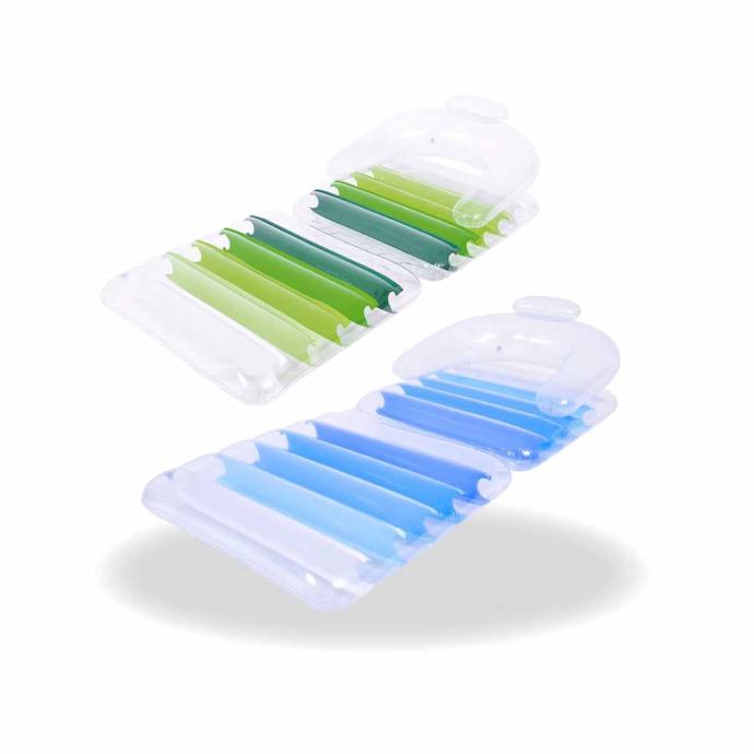 Ovaj 2u1 zračni madrac odlikuje se svojom praktičnosti jer može se koristiti kao madrac-ležaj a preklopljen kao fotelja. Uz to je opremljen naslonjačem za ruke i naslonom za leđa. Odlikuje se modernim dizajnom kombinacijom transparentne vanjske optike, koja je prošarana rebrima u boji. Ovaj zračni madrac je savršen za maksimalno opuštanje!
