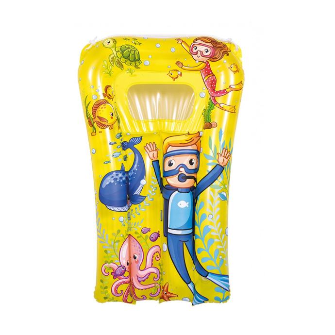 Savršen dizajn i izrada čine ovaj zračni madrac savršenim za manju djecu. Dizajn okvira s prozorčićem za gledanje u morsko dno i veselim morskim motivom oduševit će mališane i priuštiti im veselu ljetnu zabavu na moru ili bazenu. Lako se napuše i ispuše. Kada je ispuhan ne zauzima puno prostora i stoga je savršen za odmor i kampiranje.
