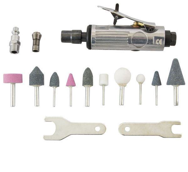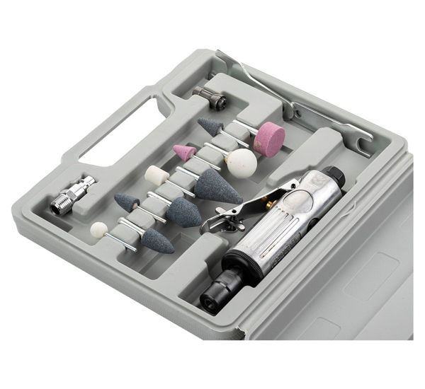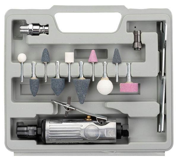 set za brušenje s pneumatskom bušilicom pripremljen posebno za ljude koji žele vrhunsku ponudu za popravak guma u svojoj radionici za vulkanizacijuopsežni set brusnih brusa koristi se za grube gume, odnosno za pripremu gume prije nanošenja ljepila i zakrperazličiti oblici kamenčića za brušenje prilagođeni su najčešćim oštećenjima ramena, čela i bočne strane gumeizmjenjivi prihvati s 3 mm i 6 mm omogućuju vam uporabu brusilice također s i ostalim alatimazahvaljujući praktičnoj futroli, set je uvijek pri ruci, spreman za upotrebuTehnički opis: prosječna potrošnja zraka: 115 l / minprihvat: 3/6 mmrazina buke: 82 dBaradni tlak: 6.2 Barduljina: 152 mmpromjer ulaza: 1/4 "brzina rotacije: 25.000 okr / minminimalni promjer crijeva: 10 mm]]>